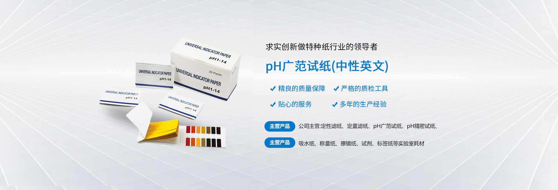 公司主營(yíng):定性濾紙、定量濾紙、pH廣范試紙、pH精密試紙、吸水紙、稱量紙、擦鏡紙、試劑、標(biāo)簽紙等實(shí)驗(yàn)室耗材